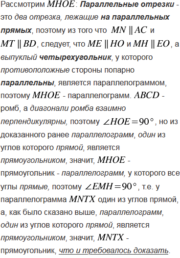 Докажите, что середины сторон ромба являются вершинами прямоугольника.