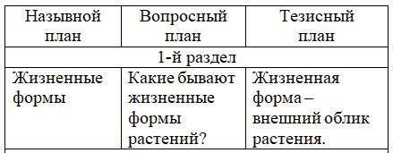 Возьмите любой параграф из вашего учебника по географии или биологии, выделите в тексте микротемы и ключевые слова. Составьте планы текста в таблице (назывной, вопросный, тезисный). Образец выполнения задания см. упр. 128. Перескажите текст, пользуясь одним из составленных планов.